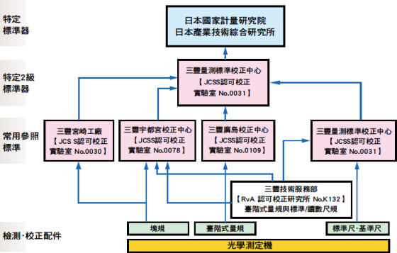 ▲為確立並維護客戶的量測工具與儀器的可追溯性,Mitutoyo採用的長度標準在用於校正量測工具與儀器的標準時可直接轉換為日本國際標準。